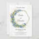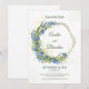 Cartão de convite de casamento rústico decorado com mirtilos pintados à aguarela e folhagens botânicas. Este design botânico de casamento é perfeito para casamentos no campo, celeiro ou inspirados na natureza. Personalize com seus nomes, data do casamento e localização para um anúncio rústico encantador.
