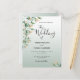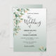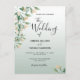 À frente: Tema botânico. Gradiente verde sábio, fundo ombre. Decorados com verde, prigos e folhagem com flores de ouro pequeno. Escrita escrita em letras grandes modernas, tipografia com o texto: O casamento de. Modelos para seus nomes e detalhes do casamento. Texto preto. Voltar: plano de fundo verde sage. Dica: Se você não quiser que pareça um cartão postal, clique em personalizar, vá para o verso e remova o divisor e o carimbo de posto.