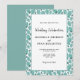 Convite de Casamento Botânico Elegante com Folhas em Turquesa. Folhas turquesa em branco. O padrão de folhas emoldura o texto. Você pode personalizar facilmente todo o texto - personalize com o nome da noiva, nome do noivo, data e hora, local e alterar ou apagar qualquer texto no cartão.