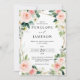 Convite de casamento floral botânico cor-de-rosa claro / pêssego na primavera, apresentando um buquê de rosas de aquarela pastéis suaves, peônias e hortênsias em tons de rosa claro, pêssego e creme com folhas botânicas verdes exuberantes e folhas de eucalipto. Uma escolha de design moderno que é perfeita para casamentos temáticos de primavera e verão em tons de rosa claro e sage. Por favor, entre em contato comigo para mais personalização ou itens correspondentes.