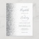 A borda esquerda deste convite de casamento moderno e elegante apresenta uma borda de brilho falso prateado. O texto personalizável combina caligrafia cinza, copperplate e fontes itálicas em um fundo branco. O verso apresenta um design prateado e branco correspondente.