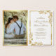 Convide seus hóspedes com este elegante convite de casamento dobrado, com um belo quadro floral de ouro falso no quadro floral de folha de dentro e ouro real com noiva e nomes de noivos no exterior. Basta adicionar os detalhes do seu evento neste modelo fácil de usar e enfeitar este cartão com a sua foto favorita para torná-lo um convite único.