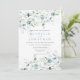 Um requintado conjunto de convites de casamento com ilustração em aquarela de eucalipto em tons azulados e verdes e outras folhagens.