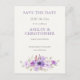 Casamento moderno elegante e elegante, exceto o cartão postal com um buquê floral de cor d'água em tons roxos e lavandas. Perfeito para primavera, verão e casamentos outono modernos, boho e temáticos rústicos. Tipografia moderna da serifa. Composição clássica. Totalmente personalizável. Entre em contato para obter assistência para personalizar ou personalizar seus desejos.