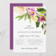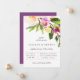 Elegante arranjo floral em roxo cassis, rosa desmaiado e verde vibrante em aquarela, convite de casamento. Design de tipografia moderno e sofisticado. Verso do cartão apresenta cor sólida em roxo cassis da moda.