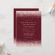 Adicione um toque de elegância ao seu casamento com este convite moderno que apresenta um rico fundo burgundy adornado com confetes cintilantes em rose gold. Perfeito para casais que procuram um design sofisticado e elegante, este convite combina luxo com um charme caloroso e romântico para definir o tom perfeito para o seu dia especial.
