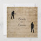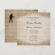 Um belo design para um casamento com tema musical. Coloque o nome dos noivos na frente tornando-o menos formal e no interior as informações usuais de casamento. O tom sépia dá a esta partitura cheia de notas elegantes e um visual antigo.