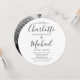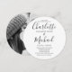 Com nomes elegantes no estilo de assinatura junto com sua foto especial, este convite de casamento circular preto e branco pode ser personalizado com os detalhes do seu casamento em letras elegantes. Desenhado por Thisisnotme©