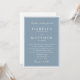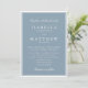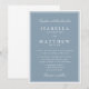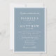 Um convite de casamento refinado com um fundo azul empoeirado suave emoldurado por uma delicada borda dupla e tipografia tradicional elegante. O layout estruturado e o contraste suave criam um visual atemporal e formal que parece polido, gracioso e sofisticado sem esforço.