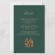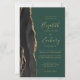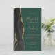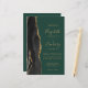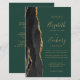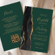 A borda esquerda deste convite de casamento moderno e elegante apresenta uma borda de ágata em aquarela preta aparada com brilho dourado falso. O texto personalizável combina caligrafia dourada, copperplate e fontes itálicas em um fundo esmeralda verde. Adicione detalhes adicionais no verso, juntamente com um código QR para ajudar seus convidados a visitar o site do seu casamento.