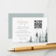 Cartão de Resposta de Convite de Casamento com Código QR Paisagem de Inverno Floresta de Pinheiros. Cartão de resposta de casamento moderno e elegante com código QR minimalista. Cartão de resposta com pintura à mão em aquarela de floresta de inverno em tons de azul poeira de ardósia e cinza com caligrafia moderna e código QR. Você pode personalizar o texto, estilo de fonte, cor e tamanho na frente e no verso deste cartão de resposta botânico. Itens correspondentes disponíveis.