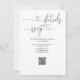 Este convite de casamento preto e branco elegante com caligrafia em script coração pode ser personalizado com suas informações em tipografia sofisticada com os detalhes do seu site de casamento e seu código QR no verso. Projetado por Thisisnotme©