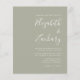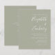 Este convite de casamento moderno e simples apresenta texto branco em um fundo verde sage. Adicione os nomes da noiva e do noivo em caligrafia manuscrita estilosa e os detalhes em fonte sans serif. O verso fornece espaço para detalhes do casamento em um fundo verde sage sólido, juntamente com um código QR que os convidados podem escanear para visitar seu site e responder.