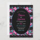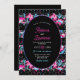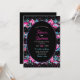 Dê à sua celebração de casamento uma alegria vibrante usando este convite para casamentos coloridos mexicanos adornado com um padrão floral brilhante e vivo. Dirigido contra fundo azul-rosa-negrito, a design apresenta uma explosão de flores coloridas pintadas à mão em tons de rosa e azul inspiradas nos tradicionais motivos mexicanos de fiesta. Os florais graciosamente enquadram seus detalhes de casamento, criando uma estética festiva, mas elegante. Perfeito para casais que querem honrar a herança mexicana com um toque espiritual e colorido em seu dia especial.