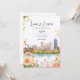 Este convite de casamento apresenta uma pintura da silhueta da cidade de Boston, Massachusetts com ilustração de árvores.