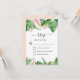 Cartões de Confirmação de Casamento com Folhas de Palmeira Verde Tropical e Flores Rosa Coral em Aquarela para Casamento de Primavera ou Verão - inclui uma bela e elegante tipografia de letra cursiva com flores botânicas tropicais modernas e folhagens para a celebração especial do dia do Casamento.