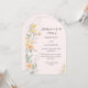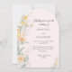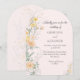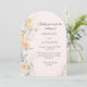 Defina um tom romântico e encantador para o seu dia especial com este lindo convite de casamento em forma de arco. Apresenta delicadas flores silvestres em aquarela em tons pastéis suaves de amarelo, pêssego e damasco, elegantemente entrelaçadas com folhagens botânicas contra um fundo rosa suave. Perfeito para um jardim de primavera, um casamento ao ar livre de verão ou um casamento botânico caprichoso.