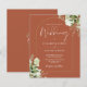 Este convite de casamento econômico e elegante com folhas de verde botânico pode ser personalizado com suas informações em tipografia sofisticada com suas iniciais monogramadas no verso em um fundo de terracota. Criado por Thisisnotme©