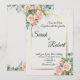 Romântico, elegante e refinado — este convite de save the date de rosa cor-de-rosa apresenta flores suaves, folhagens delicadas e uma moldura de arco dourado atemporal.