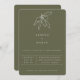 Arte de linha de ramo de azeitona toscana rústica em branco, design de tipografia moderna, convite de casamento. A cor de fundo, mostrada em verde musgo, pode ser personalizada.
