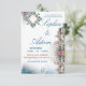 Traga elegância atemporal para o seu dia especial com este convite de casamento inspirado no Marrocos, apresentando tons luxuosos de azul-turquesa, detalhes em dourado suave e padrões intricados de arabescos.