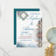 Traga elegância atemporal para o seu dia especial com este convite de casamento inspirado no Marrocos, apresentando tons luxuosos de azul-turquesa, detalhes em dourado suave e padrões intricados de arabescos.