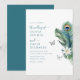 Apresentamos o nosso "Convite de Casamento Elegantes Borboletas Pena de Pavão", uma escolha refinada e sofisticada para o seu dia especial. Este convite exala elegância discreta com o seu design delicado, apresentando flores tropicais brancas, folhas exuberantes de monstera e palmeira, e elegantes penas de pavão, todas acentuadas por borboletas caprichosas.