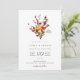 Elegante buquê floral e folhagem de outono em aquarela colorida, convite de casamento. A cor de fundo, mostrada em branco, pode ser personalizada. Design de tipografia moderno e sofisticado.