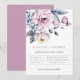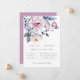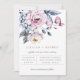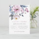 Lindo arranjo floral em aquarela azul poeira e rosa velho, convite de casamento. Design de tipografia moderno e sofisticado em cinza e rosa velho. Verso do cartão apresenta cor sólida em rosa velho, que pode ser personalizada.