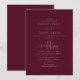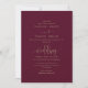 Este convite de casamento romântico apresenta caligrafia rica em borgonha com floreios elegantes—perfeito para casamentos de outono, formais ou clássicos. Os tons profundos e a escrita graciosa adicionam calor e sofisticação ao seu dia especial. Totalmente personalizável com sua redação.