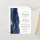 A borda esquerda deste elegante convite de casamento moderno apresenta uma borda de ágata em azul marinho com acabamento em brilho dourado falso. O texto personalizável combina fontes manuscritas, copperplate e itálicas em cinza carvão em um fundo branco. Adicione detalhes adicionais no verso, juntamente com um código QR para ajudar seus convidados a visitar o site do seu casamento.