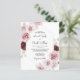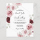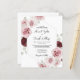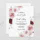 Este convite de casamento Floral Rosa Bege Borgonha Vermelho deste orçamento está em alta em uma paleta de cores suaves de rosa bege, vermelho borgonha, verde sage e branco. Ele apresenta belas rosas românticas detalhadas em aquarela e flores com folhagens de eucalipto. Esta adorável paleta de cores é perfeita para um casamento de primavera, verão ou outono. Personalize com todos os detalhes do seu casamento. O verso inclui um código QR de casamento para que seus convidados respondam online.