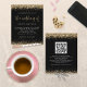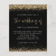 Uma alternativa de orçamento com custo-benefício em um tamanho menor 4,5 x 5,6” semi-brilho 110lbs de peso, que é de espessura semelhante a um cartão postal (no entanto, não é adequado para uso como cartão postal). POR FAVOR, OBSERVE que há UM convite por folha. Convite de Casamento com Código QR Glitter Preto e Dourado. Adicione o seu código QR ao seu site de casamento no verso para que os seus convidados possam responder e ver todos os detalhes online sem a necessidade de envelopes separados. Uma tipografia elegante é em dourado para o título principal O Casamento complementando o resto do texto que você pode facilmente personalizar, com bordas de confetes glitter dourados na parte superior e inferior e também no verso.