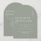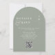 Este convite de casamento com monograma minimalista em verde sage pode ser personalizado com suas informações em tipografia moderna e o código QR do endereço do site do seu casamento no verso. Criado por Thisisnotme©