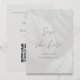 Esta é uma ótima opção para enviar convites de casamento para amigos e familiares. A frente apresenta um design de folhas tropicais. O verso tem informações adicionais junto com um código QR para o site do seu casamento (entre outros). Basta alterar o texto para atender às suas necessidades. Use o modelo para personalizar.