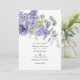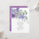Convite de casamento moderno com folhas de eucalipto e plantas suculentas misturadas com flores em tons de lilás pastel, roxo e violeta. Ideal para qualquer tema ou casamento no jardim. O código QR no verso direciona para o site do seu casamento onde as pessoas podem saber mais e responder.