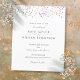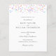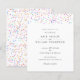Confetes coloridos de arco-íris repousam acima dos detalhes do convite para o seu casamento com orçamento especial em tipografia moderna elegante e sofisticada. Projetado por Thisisnotme©