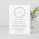 Convite de casamento com design clássico e rústico com monograma da noiva e do noivo. Decorado com coroa de flores rosa simples e minimalista. Pequenos botões de flores e poeira voando. Perfeito para casamento de primavera ou inverno. Faixa rosa no verso do cartão. Você pode personalizar a redação para se adequar a qualquer ocasião, como chá de noiva, festa de noivado, aniversário ou qualquer celebração e evento romântico.