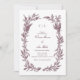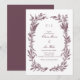 Celebre seu amor com este convite de casamento com coroa de flores silvestres rústicas em borgonha, apresentando uma moldura delicada de ilustrações botânicas desenhadas à mão - incluindo gramíneas silvestres, flores e folhagens - arranjadas em uma coroa natural e orgânica. A tonalidade profunda de ameixa adiciona um toque quente e terroso, perfeito para casamentos ao ar livre, em jardins ou com tema country, especialmente em locais encantadores como o Le Pavillon Hotel em Nova Orleans.