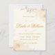 Um cartão de convite de casamento refinado com flores pastéis suaves em tons de pêssego e amarelo, acentuados com delicados floreios dourados. Perfeito para celebrar o seu dia especial, este design combina elegância atemporal com um toque romântico, deixando os convidados com uma impressão duradoura.