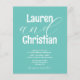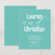 Design moderno minimalista em azul turquesa. Este modelo de convite de casamento combina dois tamanhos de fonte para uma aparência mais dinâmica.