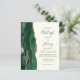A borda esquerda deste convite de casamento moderno e elegante apresenta uma borda de ágata em água-marinha esmeralda com brilho dourado falso. O texto personalizável combina fontes script, copperplate e itálico em verde esmeralda sobre um fundo marfim. O verso apresenta um design correspondente em esmeralda e ágata dourada.