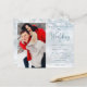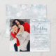 Um convite de casamento econômico com tipografia elegante e delicados flocos de neve caindo sobre sua foto especial, nomes personalizados, data especial e detalhes do evento de celebração do casamento em um fundo de geada de inverno. Criado por Thisisnotme©