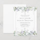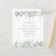Convite de casamento com floral watercolor greenery sage lilás orçamento com lindas folhas de sage e lilás que caem sobre uma moldura prateada elegante que envolve os detalhes do seu casamento em texto clássico e elegante. Criado por Thisisnotme