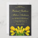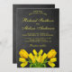 Surpreenda seus convidados com este elegante convite de casamento floral apresentando belas flores de tulipa contra um fundo de quadro-negro. Basta adicionar os detalhes do seu evento neste modelo fácil de usar para torná-lo um convite único.