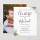 Com sua foto, nomes em estilo de assinatura e folhas de verdura, este convite de casamento econômico e elegante pode ser personalizado com suas informações em letras elegantes. Criado por Thisisnotme©