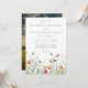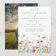 Este design apresenta uma borda de flores silvestres vibrantes em tons de vermelho, amarelo, verde, azul turquesa e azul. Perfeito para casamentos de verão informais.