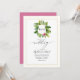 Um convite de casamento deslumbrante com uma grinalda de vegetação tropical com acentos rosa vibrantes e um monograma personalizável. O verso inclui espaço para a foto do casal e um código QR para compartilhar detalhes do casamento sem esforço. Perfeito para temas de casamento tropical ou de destino.