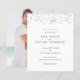 Convite de casamento com confetes arco-íris coloridos acima dos detalhes do convite para o seu casamento orçamento especial em tipografia moderna elegante e sofisticada. O verso apresenta sua foto especial. Concebido por Thisisnotme