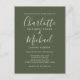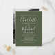 Com a sua foto e os nomes em estilo de assinatura, este convite de casamento em cartão postal elegante na cor verde oliva pode ser personalizado com as suas informações em letras sofisticadas. Concebido por Thisisnotme